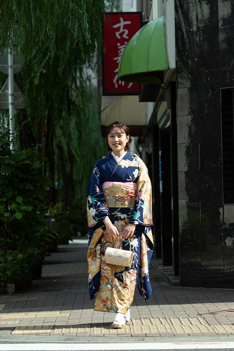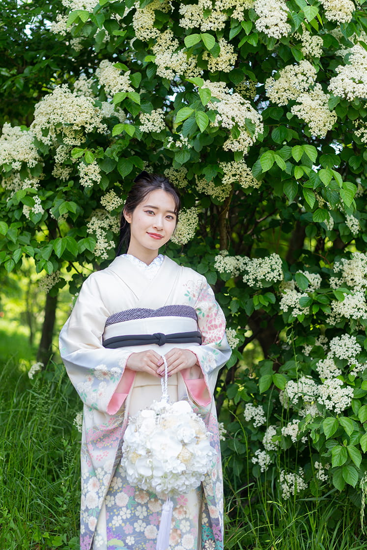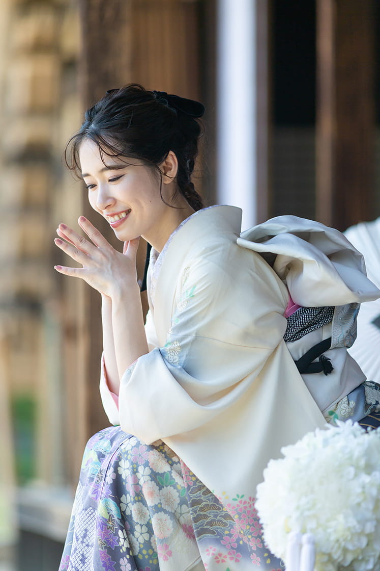 衣装は見学にお越しいただく他、Web上でお選びいただき当日に着付けさせていただくことも可能です。
